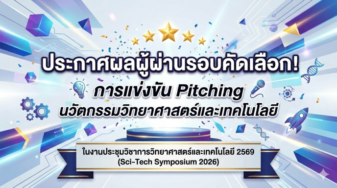 ประกาศผลผู้ผ่านรอบคัดเลือก! การแข่งขัน “Pitching นวัตกรรมวิทยาศาสตร์และเทคโนโลยี” ในงานประชุมวิชาการวิทยาศาสตร์และเทคโนโลยี 2569