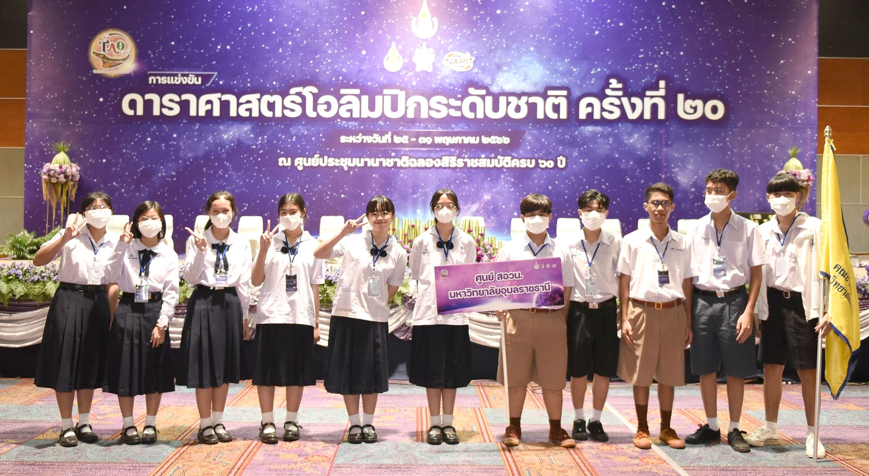 ขอแสดงความยินดีกับ นักเรียนผู้แทนศูนย์ สอวน. มหาวิทยาลัยอุบลราชธานี เด็กหญิงอัญวีณ์ พิริยฉัตรไชย โรงเรียนเบ็ญจะมะมหาราช ได้รับรางวัลเหรียญทองแดง และ เด็กหญิงธนัญชนก เมืองโคตร โรงเรียนวิทยาศาสตร์จุฬาภรณราชวิทยาลัย มุกดาหาร ได้รับรางวัลเกียรติคุณประกาศ ระดับมัธยมศึกษาตอนต้น จากการแข่งขันดาราศาสตร์โอลิมปิกระดับชาติ ครั้งที่ 20 The 20th Thailand Astronomy Olympiad (20th TAO) ภายใต้การกำกับดูแลของ นายเชิดชัย วุฒิยา อาจารย์ประจำภาควิชาฟิสิกส์ มหาวิทยาลัยอุบลราชธานี และ นายจันทร์เพ็ง อังฉกรรจ์ ครูประจำโรงเรียนเขมราฐพิทยาคม อาจารย์ผู้แทนศูนย์ สอวน. มหาวิทยาลัยอุบลราชธานี อาจารย์ที่ปรึกษาและนำนักเรียนเข้าร่วมการแข่งขันดาราศาสตร์โอลิมปิกระดับชาติ ครั้งที่ 20 ระหว่างวันที่ 26 - 31 พฤษภาคม 2566 ณ คณะวิทยาศาสตร์และเทคโนโลยี มหาวิทยาลัยสงขลานครินทร์ วิทยาเขตปัตตานี สำหรับวัตถุประสงค์การแข่งขันดาราศาสตร์โอลิมปิกระดับชาติครั้งนี้ เพื่อคัดเลือกนักเรียนในระดับมัธยมศึกษาตอนต้นและตอนปลายเพื่อเป็นผู้แทนประเทศไทย เข้าร่วมแข่งขันดาราศาสตร์โอลิมปิกระหว่างประเทศและการแข่งขันดาราศาสตร์และฟิสิกส์ดาราศาสตร์ระหว่างประเทศ ใน ปี พ.ศ. 2566 และยังเป็นการส่งเสริมและเปิดโอกาสให้เยาวชนได้แสดงความสามารถด้านปัญญาและพัฒนาศักยภาพของตนให้สูงขึ้น กระตุ้นให้เกิดบรรยากาศด้านวิชาการ ส่งเสริมการเรียนการสอนวิชาดาราศาสตร์ให้เป็นที่สนใจของเยาวชนและนักวิชาการทั่ว ๆ และในปีนี้มีผู้แทนจากศูนย์ สอวน.ทั่วประเทศ 12 ศูนย์ และมีนักเรียนเข้าร่วมการแข่งขัน 128 คน ซึ่ง สอวน. มหาวิทยาลัยอุบลราชธานี ได้ส่งนักเรียนที่ระดับมัธยมศึกษาตอนต้น 6 คน และ ระดับมัธยมศึกษาตอนปลาย 6 คน โดยในปีนี้ ศูนย์โอลิมปิกวิชาการ คณะวิทยาศาสตร์และเทคโนโลยี มหาวิทยาลัยสงขลานครินทร์ วิทยาเขตปัตตานี เป็นเจ้าภาพจัดการแข่งขัน ร่วมกับ มูลนิธิส่งเสริมโอลิมปิกวิชาการและพัฒนามาตรฐานวิทยาศาสตร์ศึกษา ในพระอุปถัมภ์สมเด็จพระเจ้าพี่นางเธอ เจ้าฟ้ากัลยาณิวัฒนา กรมหลวงนราธิวาสราชนครินทร์ (สอวน.) และสถาบันวิจัยดาราศาสตร์แห่งชาติ กระทรวงวิทยาศาสตร์และเทคโนโลยี เพื่อเป็นการเฉลิมพระเกียรติครบรอบ ๑๐๐ ปีวันประสูติ สมเด็จพระเจ้าพี่นางเธอเจ้าฟ้ากัลยาณิวัฒนา กรมหลวงนราธิวาสราชนครินทร์ และเนื่องในโอกาสที่องค์การยูเนสโก ประกาศยกย่องให้เป็นบุคคลสำคัญของโลก เป็นการสำนึกในพระมหากรุณาธิคุณเป็นล้นพ้นที่พระองค์ทรงมีต่อการศึกษาทางวิทยาศาสตร์ของประเทศ นับเป็นอีกหนึ่งความสำเร็จและภาคภูมิใจของคณะวิทยาศ